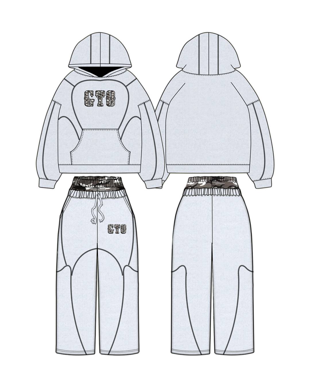 A luxury Two piece with a hood, exotic military stripes bringing out the God soldier in you
